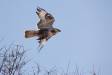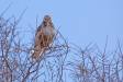 Если не ошибаюсь, здесь мохноногий курганник. Глаз очень светлый - птица молодая. У молодого зимняка нет четких многочисленных полос в окрасе хвоста.