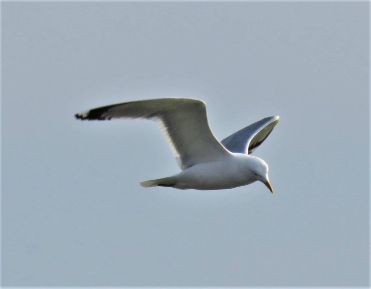 2022-02-25. Анна Ясько:На фото хохотунья. У сизой чайки больше черного на вершине крыла и более крупные белые зеркальца. Да и пропорции хохотуньи, сизая чайка более компактная. Вот пример.