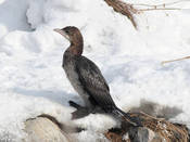 У взрослых птиц в весеннем наряде голова и шея бурые; плечевые, верхние кроющие крыла и второстепенные маховые темно-серые с черными краями; вся остальная верхняя сторона, первостепенные маховые, рулевые, кроющие хвоста, бока брюха и груди и зоб черные, с металлическим отливом; середина груди и брюха темно-бурые. На голове, шее, спине, подхвостье и по всей нижней стороне разбросаны мелкие белые перышки. Зимой все цвета тусклее, голова и шея черные. Рулевых 12. Ноги черные, радужина темно-коричневая, иногда синевато-черная. Молодые сверху темно-бурые; горло белое; низ или беловатый или буроватый. Размеры: крыло 200-210 мм, хвост 140-150 мм, плюсна около 36 мм, клюв 27-33 мм.