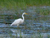 Common breeding migrant. Inhabits plain lakes with the plenty reed-beds, trees, bushes, nearby the shallow water. In spring appears early in the time of emergence of the first patches of open water, but the majority of birds migrate in small flocks from the mid-March to early April (in a late spring only at the end of April). Begins to breed immediately after arrival. Nests in separate pairs or in small colonies of one-two dozen pairs, often together with Grey Heron and Spoonbill. Nest is located in the reed-beds; is built from the dry reed stems and leaves, or rarely from thin twigs in the case of location of the nest on trees. Clutch of 3-4, rare 5 eggs is produced from mid-April to beginning of May. Juveniles begin to fly from mid-May to beginning of August. At first Egrets disperse by families, then are united in flocks sometimes numbering to 1500 birds. Autumn migration is intensive mostly in September – early October.