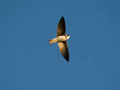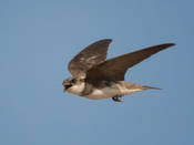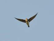 Береговая ласточка - многочисленная гнездящаяся перелетная птица. Населяет берега рек, прудов, озер, высохшие русла рек, песчаные карьеры, иногда расположенные далеко от воды. Гнездятся в равнинных песочных и глиняных обрывах, стенах глиняных зданий, колодцев и карьеров с вертикальными стенами. Появляется стайками в 20-50 птиц в начале-середине апреля в южных районах, и в середине апреля - начале мая - в северных. На Чокпакском перевале большинство птиц пролетает в конце апреля - первой половине мая, последние весенние мигранты регистрировались в конце мая. Чаще всего гнездятся колониями в несколько десятков или сотен пар, но иногда в колониях бывает до нескольких тысяч гнезд, и норы отстоят друг от друга всего на 20-50 см. Гнездо в течение 3-7 дней роют оба родителя, гнездовую комнату выстилают сухой травой и перьями. Кладка в 3-5 яиц происходит в конце мая - начале июля. Оба родителя насиживают яйца в течение 12-16 дней и выкармливают птенцов, которые оперяются в возрасте примерно трех недель, с конца июня по середину июля. Некоторые пары поднимают два выводка за сезон, обычно повторное гнездование в случае утери первой кладки, поскольку некоторые колонии бывают смыты сильными волнами. Питаются исключительно насекомыми, ловят их в воздухе, чаще всего - у воды или над водой. Но могут собирать насекомых с воды, с растений, с земли - как схватывая их на лету, так и присаживаясь. При похолоданиях и затяжных дождях, когда насекомые не летают, ласточки отсиживаются в норках, могут собираться по несколько птиц, прижиматься друг к другу, впадать в оцепенение с понижением температуры тела. В первые дни после вылета птенцы держатся у колонии и часто возвращаются в норки. Позднее они объединяются в стаи и кочуют вдоль рек, отдыхают на проводах, останавливаются на ночевку в оказавшихся поблизости колониях или в тростниках. Осенний перелет начинается в середине августа. Большинство птиц улетают с конца августа по первую половину сентября, часто в смешанных стаях с бледной ласточкой, городской, деревенской и рыжепоясничной ласточками. Последние осенние мигранты наблюдались в конце сентября - конце октября.