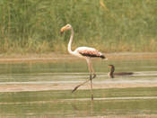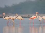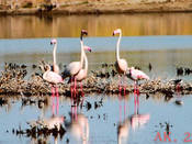 Редкая гнездящаяся перелетная птица. Гнездится на сильносоленых и мелководных озерах, где обитает рачок Artemia salina, являющийся основным кормом для фламинго. Весной появляется с конца марта по конец апреля в небольших группах или стаями по 100-600 птиц. Миграция заканчивается в середине-конце мая с прибытием неполовозрелых птиц. Гнездится колониями от 50 до 30 000 пар. Конусообразные гнезда высотой 7-60 см строятся из грязи, окружающей колонию и состоящей из соленого ила, песка и водорослей; но иногда яйца откладываются прямо на песок, даже без гнездовой ямки. Кладка из 2-3, реже 1 яйца, производится с начала мая до конца июня. Молодняк начинает летать в августе - начале сентября. Осенняя миграция протекает в сентябре - октябре. Случайные птицы задерживаются до замерзания водоемов. Птицы, гнездящиеся в Казахстане (на озере Тенгиз) и в Иране (на озере Урмия) формируют одну популяцию, так молодые фламинго, окольцованные в Иране, в последующие годы регулярно наблюдаются во время линьки на озере Тенгиз.