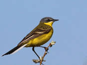 Желтая трясогузка - многочисленная перелетная гнездящаяся птица. Населяет влажные луга с высокой травой и редкими кустами или тростниковыми окраинами; сырые берега озер и заливные луга на равнинах и предгорьях до высот 400-450 м над уровнем моря. На пролете встречается в пустынных равнинах около источников воды; тростниковых зарослях (где птицы скапливаются тысячами); и редко в высокогорье до 3200 м. Появляется после схода снега стайками в 30-150 птиц с середины марта по начало апреля в южных районах, и в середине-конце апреля в северных. Большинство птиц прилетает с середины апреля по начало мая, последние весенние мигранты наблюдались в середине-конце мая. Гнездится разреженными колониями, гнезда располагаются недалеко друг от друга. Для желтой трясогузки характерно неравномерное распределение, когда однотипные местообитания местами не заселены, а местами формируются плотные поселения, где пара от пары располагается в нескольких десятках - сотне метров. Гнездо строит в ямке под кустиком травы, из сухой травы и выстилается волосом и небольшим количеством перьев. Кладка в 4-6 яиц происходит в середине мая - середине июня. В течение 12-13 дней насиживает в основном самка. Оба родителя выкармливают птенцов, которые оперяются на 14-15 день, в середине июня - середине июля. Повторное гнездование в случае утери первой кладки - обычно. С середины лета выводки и стайки взрослых и молодых птиц кочуют по околоводным местообитаниям. Осенний перелет начинается в конце июля - начале августа, большинство птиц улетают с конца августа по середину сентября, последние осенние мигранты зарегистрированы в конце октября и даже в начале ноября.