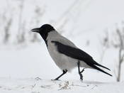 Общеизвестная птица с серым оперением туловища и черными головой, крыльями и хвостом. Сходных видов нет. Самец и самка внешне не отличаются, самцы в среднем несколько крупнее. Молодые похожи на взрослых уже после вылета из гнезда, но серый цвет у них темнее и с бурым оттенком, а черный - без блеска. Есть возрастные отличия, которые можно разглядеть, когда птица в руках: у молодых глаза буровато-серые, ротовая полость белая, у второгодков глаза коричневые, полость рта белая или пятнистая; у взрослых глаза темно-коричневые или почти черные, полость рта серая или (у более старых) черная. Вес 430-740 г, длина 44-51, крыло 29.2-35.5, размах 87-102 см.