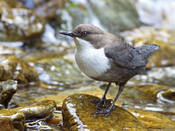 Обыкновенная оляпка - околоводная птица очень характерной внешности, размером с небольшого дрозда, коренастая и короткохвостая. У взрослых самцов и самок верх головы, шеи и передняя часть спины темно-бурые. Задняя часть спины серая с чешуйчатым рисунком, не заметным издали. Надхвостье серое с легким бурым оттенком. Окраска нижней стороны тела у различных подвидов значительно варьирует от почти сплошь белой до бурой. Бока тела бурые с серым оттенком, маховые и рулевые буро-серые. Самцы и самки внешне не различаются, сезонных различий в окраске нет. Молодые сверху светлее взрослых, буровато-серые, с отчетливым чешуйчатым рисунком из-за темно-бурых каемок на кроющих перьях, снизу белая окраска горла и брюха, также с темным чешуйчатым рисунком от горла до подхвостья. К началу осени молодые не отличаются от взрослых. Летают низко над водой, полет прямой и быстрый. Вес 50-85 г, длина 17-20, крыло самцов 9,2-10,1, самок - 8,2-9,1, размах 25-30 см.