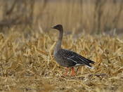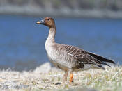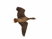 Not rare but sporadical distributed passage migrant and rare winter visitor. In spring migrates from early March to mid May in southern Kazakhstan. In northern areas, migration occurs from mid-March to end of April. In autumn migrates from mid-end of September to early November. Migrates in independent flocks of some dozen birds usually, or with other geese.