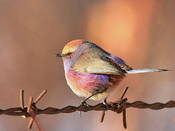 У самца расписной синички в брачном наряде верх головы рыже-каштанового цвета с фиолетовым оттенком. Лоб и брови светлые, охристо-белые. Бока головы и шеи буровато-серые с фиолетовым оттенком. Спина буровато-серая, поясница и надхвостье яркие - фиолетово-синие. Горло, грудь, бока и подхвостье красновато-бурые с сильным фиолетовым блеском. Брюшко светло-охристое. Маховые и верхние кроющие крыла темно-бурые, с узкими серовато-синими каймами наружных опахал первостепенных маховых и рыжеватыми каймами на крайних второстепенных. Рулевые буровато-черные с голубовато-фиолетовыми окаймлениями перьев, исключая две пары крайних, которые несколько светлее остальных и имеют грязно-белые наружные опахала. Радужина красная, клюв и когти черные, ноги черно-бурые. Самка окрашена более тускло. Верх головы рыжеватый, лоб и брови лишь слегка светлее окружающего оперения. На пояснице и надхвостье фиолетово-синий цвет развит слабее, спина с более сильным буроватым оттенком. Низ грязного охристо-серого цвета, лишь на боках сохраняются фиолетово-рыжеватые тона, подхвостье рыжеватое. Голубоватые окаймления на рулевых и маховых отсутствуют. В свежем осеннем пере у самца верхняя сторона тела с песочным оттенком, нижняя сторона лиловая. Самки осенью слегка тусклее, чем весной. Молодые окрашены, как и взрослые, но все цвета у них тусклее. Половой диморфизм в окраске молодых так же хорошо выражен. Размеры: крыло 48-53 мм. Вес: 6.3 - 8.3