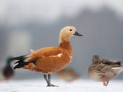 Крупная утка. Во всех нарядах в оперении преобладает ярко-рыжий цвет, позволяющий безошибочно отличать огаря от других гусеобразных. На крыле зеленое "зеркало" и большое белое поле. Самец имеет узкий черный ошейник, в осенней окраске этого ошейника нет. Самка несколько тусклее, белесее самца. Молодые еще более блеклые, сверху буроватые. Вес 1000-1600 г, длина 61-67, крыло самцов 35.4-40.0, самок - 32.1-36.9, размах 121-145 см.