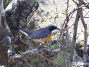 Обычный гнездящийся перелетный вид. Населяет сухие горные склоны со скалами и кустарником (шиповник, аргания, облепиха, барбарис, боярышник, рябина, арча) на высотах 800-2200 м. На пролете встречается также в лесополосах. Весной появляется в конце апреля. Гнездится отдельными парами, довольно далеко друг от друга. Гнездо располагает в кустарнике, на высоте 0.3-0.5 м от земли, строится гнездо только самкой из стеблей травы и лыка, лоток гнезда выстилается сухой травой и волокнами коры. Кладка из 4-5 яиц производится с раннего мая по начало июня. Оба родителя выкармливают птенцов, которые оперяются в середине июня. Самостоятельные птенцы наблюдались в середине июля. В Таласском Алатау поздние наблюдения соловья-белошейки относятся к концу августа - середине сентября.