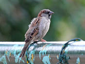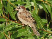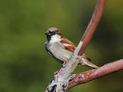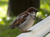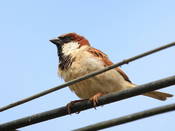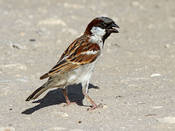 Домовый воробей – самая известная из птиц. У самца верх головы и поясница темно-серые, с мелкими темными пестринками на голове. Надхвостье оливково-серое. Спина каштаново-коричневая, с черными продольными пестринами. Уздечка и полоса под глазом черные. За глазами по бокам головы широкие каштановые полосы, соединяющиеся на шее. Щеки серые или грязно белые, подбородок, горло, зоб и верхняя часть груди черные. Низ светло-серый, на подхвостье темные настволья. Малые кроющие крыла каштановые, средние темно-бурые с белыми вершинами, большие черно-бурые с широкими глинистыми каемками. Маховые темно-бурые с коричневато-глинистыми каемками. Рулевые бурые с узкими светлыми каемками. Клюв черный, ноги роговые, когти черные или темно-роговые. Самка похожа на самку индийского воробья, но темнее и тусклее. Клюв темно-бурый, светлеющий к основанию подклювья. После линьки у самца и самки сильно развиты охристые и буроватые каемки перьев. Молодые похожи по окраске нас самку, но с большим развитием бурого тона и оливковым налетом. Верх головы, крылья и хвост несколько светлее. Клюв светло-бурый. Вес 25,5-37,7 граммов, длина крыла 70-81, хвоста 45-62 мм.