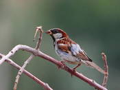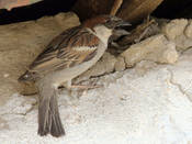 Домовый воробей - обычная оседло живущая птица. Поселяется в населенных пунктах, как крупных, так небольших, в глинистых разломах, гнездах хищников неподалеку от населенных пунктах; на равнинах и в горах до 1750-2100 м. Гнездятся отдельными парами, неподалеку друг от друга, или же в неплотных колониях. Гнездо строят в различных полостях человеческих построек, глиняных разломах, на ветвях и в полостях деревьев, внутри гнезд крупных хищников; строится гнездо из тонких веточек, сухой травы и соломы (иногда используют и зеленую полынь) и выстилается множеством перьев. Оба родителя строят гнездо 2-9 дней. Кладка 3-8 (обычно 5-6) яиц происходит в середине апреля - июле. 11-12 дней насиживают оба родителя, после 11-14 дней они выкармливают птенцов, которые оперяются с начала мая по конец августа. Такой длительный период объясняется тем, что домовые воробьи успевают поднять до трех выводков за лето. Повторное гнездование в случае утери первого выводка также обычно. Негнездовое время проводят в стайках по нескольку десятков птиц, часто вместе с полевыми воробьями. Иногда гибридизирует с индийским воробьем (Passer indicus). Некоторые птицы мигрируют на короткие расстояния, такие особи регулярно попадаются на Чокпакском перевале.