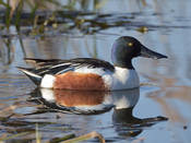 Common, locally abundant breeding migrant. Inhabits plain and mountain lakes and rivers with reed and reed mace beds, up to 1500 m in Altai and 2000 m in Tien Shan. Appears some later (some 10-15 days), than Mallards and Pintails, in early March or April. Migrates in small independent flocks, rarely with other ducks, and by mid-May migration is over. Nest is built under cover of grass or bush, in colonies with gulls and terns often for protection from predators, not far from water, on ground in shallow hollow lined with dry grass and down. Clutches of 7-11 eggs at end May – early July. Juveniles hatch early June – end July, and begin to fly from mid-July to mid-August. Loss of clutches after predation are often, therefore re-nesting is common. After females begin incubation, males gather in flocks up to a thousand and fly to moult (end May – July) in shallow steppe and desert lakes with reed-beds and other rich vegetation (Naurzum, lower Turgay, Kurgaldzhin). Autumn migration begins mid-September and continues until mid – end October.