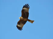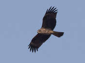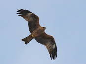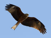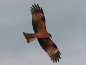 Хищник средних размеров, крупнее вороны примерно в 1,5 раза. От всех других наших хищных птиц надежно отличается слегка вильчатым хвостом. Кроме того, в силуэте летящего коршуна характерна форма кистевого сгиба - птица парит на слегка согнутых крыльях. Парением пользуются часто, держа крылья горизонтально, в одной плоскости. Преобладающая окраска темно-коричневая, в целом довольно темная сверху и снизу, голова нередко светлее туловища, есть птицы со светлым, рыжевато-коричневым оперением. Почти у всех птиц на плечевом отделе крыла сверху диагональное посветление. Самцы и самки окрашены сходно. У молодых охристые пестрины на нижней стороне тела, голове, верхних кроющих крыла, снизу крыла - пятно, варьирующее в размерах, образованное светлыми основаниями первостепенных маховых. Вес 630-950 г, длина 55-60, крыло самцов 42.6-50.5, самок - 44.8-51.5, размах 160-180 см.