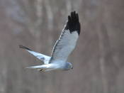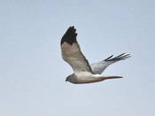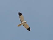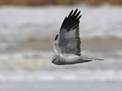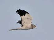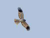 Заметно больше вороны. Окраска самца преимущественно светло-сизая, "седая". От степного луня отличается резкой границей между темными головой и грудью и белым брюхом, менее заостренным концом крыла, черный цвет на конце крыла у летящей птицы имеет границу со светлым в виде тупого угла или почти прямой линии, на верхней поверхности крыла граница черного и светлого резкая, по заднему краю крыла - темная полоса, менее выраженная у старых самцов. Четко выделяется белое поясничное пятно. Полос на рулевых нет или они слабые и видны только на раскрытом хвосте. Полувзрослые самцы-второгодки имеют часть оперения взрослого наряда, часть - еще ювенильных перьев на крыльях, хвосте и туловище. Самка отличается от самок лугового и степного луней более тяжелым телосложением, более тупым закругленным крылом, более темным и размытым рисунком на "лице", более яркой и широкой белой полосой на пояснице (этот признак хорошо "работает" на дальней дистанции). Рисунком нижней поверхности крыла похожа на самку лугового луня: три четкие продольные полосы, но светлый промежуток между первой (краевой) и второй полосами почти такой же ширины, как между второй и третьей, верхняя поверхность крыла темная, и поэтому маскируется темная полоса по второстепенным маховым и она не видна так четко, как у лугового луня. На хвосте снизу одна широкая темная концевая полоса, вторая менее четкая и на сложенном хвосте похожа скорее на серединное пятно, т.е. как у степного луня. На раскрытом хвосте 2 полосы снизу видны отчетливо, третья частично прикрыта перьями подхвостья. Молодые похожи на самку, но более рыжеватые снизу, с узкими темными пестринами, на перьях верха крыльев более развиты рыжеватые или охристые каемки, на "лице" более четкий рисунок, чем у самки, глаза бурые (у взрослых - желтые). Ноги желтые, как у взрослых. Контактные признаки полевых луней любого пола и возраста: вырезка внутреннего опахала 1-го первостепенного маха примерно на одном уровне с вершинами кроющих кисти, вырезки на наружных опахалах есть на крайних 5 первостепенных маховых. Вес самцов 300-400, самок - 400-710 г, длина 43-56, крыло самцов 32.3-35.8, самок - 35.8-39.6, размах 99-122 см.