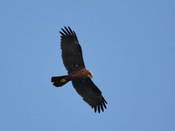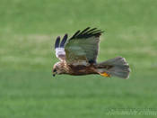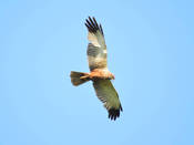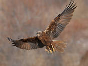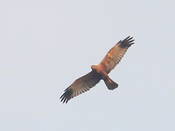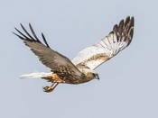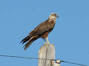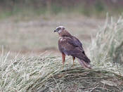 Размерами значительно крупнее вороны, самый крупный и ширококрылый из луней. Сходных видов нет. В окраске самца много серебристо-сизоватого цвета - хвост, большие участки на крыле сверху и почти все крыло снизу; голова, туловище и часть крыла сверху коричневые, может быть больше или меньше светлых охристых или серебристо-серых пестрин, обычно их больше на голове, вплоть до преобладания охристого или светло-серого цвета, концы крыльев черные. Глаза желтые. Самка сверху и снизу темная, от серовато-бурого до шоколадно-коричневого, на голове охристо-желтая или кремовая "шапочка", такого же цвета горло и передний край крыла от основания до кистевого сгиба. Форма этих светлых пятен на голове и крыле очень изменчивы, крыло нередко целиком бурое. Сверху на крыле может быть сизый налет. Глаза коричневые. Молодые в первую осень похожи на самку, но на бурых перьях обычно есть охристые каемки и пятна, снизу на крыле часто бывает светлое пятно в основании первостепенных маховых. Бывают молодые однообразной темно-бурой окраски. Глаза у молодых бурые. Второгодки одеты в целом как молодые, но обычно с более выраженным охристым пятном на переднем крае крыла. Взрослую окраску самцы приобретают на 4-й календарный год. На 3-м календарном году у самца наряд как у взрослого, но серый цвет на крыле и хвосте более темный и с "грязью", нередки элементы ювенильного наряда. Самки одевают взрослый наряд на 3-й календарный год. Телосложение и повадки типичные для луней, полет с V-образно поднятыми крыльями, но конкретное их положение меняется в зависимости от характера и условий полета. Вес самцов 400-670, самок - 540-800 г, длина 48-55, крыло самцов 37.2-41.8, самок - 40.4-43.5, размах 110-142 см.