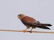 Степная пустельга - обычная гнездящаяся перелетная птица. Обитает в степях и пустынях со скальными выходами или глинисто-каменистыми обрывами; в невысоких горах со скалистыми ущельями; и в предгорьях основных хребтов. Предпочитает ландшафты травянистых равнин и холмов с обилием саранчи и других насекомых. Весной появляется в марте, но в основном в апреле. Летит в разреженных стаях или в небольших группах. Весной последние птицы на перевале Чокпак наблюдались в середине мая. Гнездится колониями в один-два десятка птиц, но отдельно гнездящиеся пары тоже не редкость. Гнездо степная пустельга строит в нишах скал или глинистых обрывов, между камнями, или в полостях под мостами, в старых домах, кошарах или могильниках. Каких-то специальных материалов в строительстве гнезда не использует. Иногда гнездится в старых гнездах горлиц. Кладка 2-7 (обычно 4-5) яиц происходит в конце апреля - мае или в начале июня (возможно так поздно гнездятся впервые размножающиеся пары). В основном насиживает самка, но самец подменяет ее на короткое время (у самцов есть наседное пятно) и приносит пищу. Насиживание длится 24-28 дней. В одной колонии в одно и то же время можно найти гнезда со свежими яйцами и молодняк разного возраста. Оба родителя выкармливают птенцов, которые появляются на свет в конце мая - июне и оперяются в возрасте 35-40 дней, в июле - августе. Повторное гнездование в случае утери первой кладки возможно. Послегнездовые кочевки начинаются с конца июня, когда стаи степной пустельги летят в северные районы с обилием пищи (в Центральный Казахстан). Осенний перелет на юг начинается в августе. На Чокпакской станции первые птицы появляются в конце августа - начале сентября, основной трафик миграции протекает в сентябре; 25 августа 2003 около 60 птиц сидели на ловушках стационара. Во время миграции степная пустельга собирается в разреженные стаи во время кормежек, но летит в плотных стаях в несколько десятков птиц.