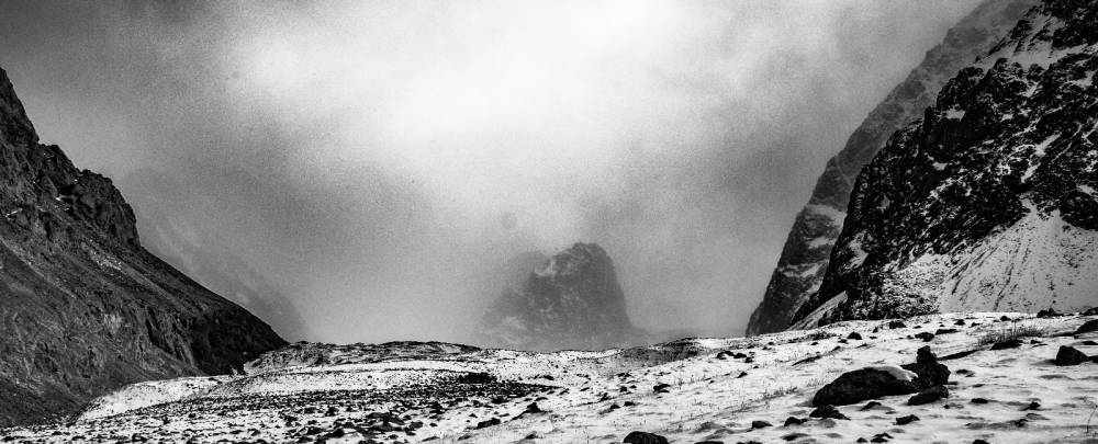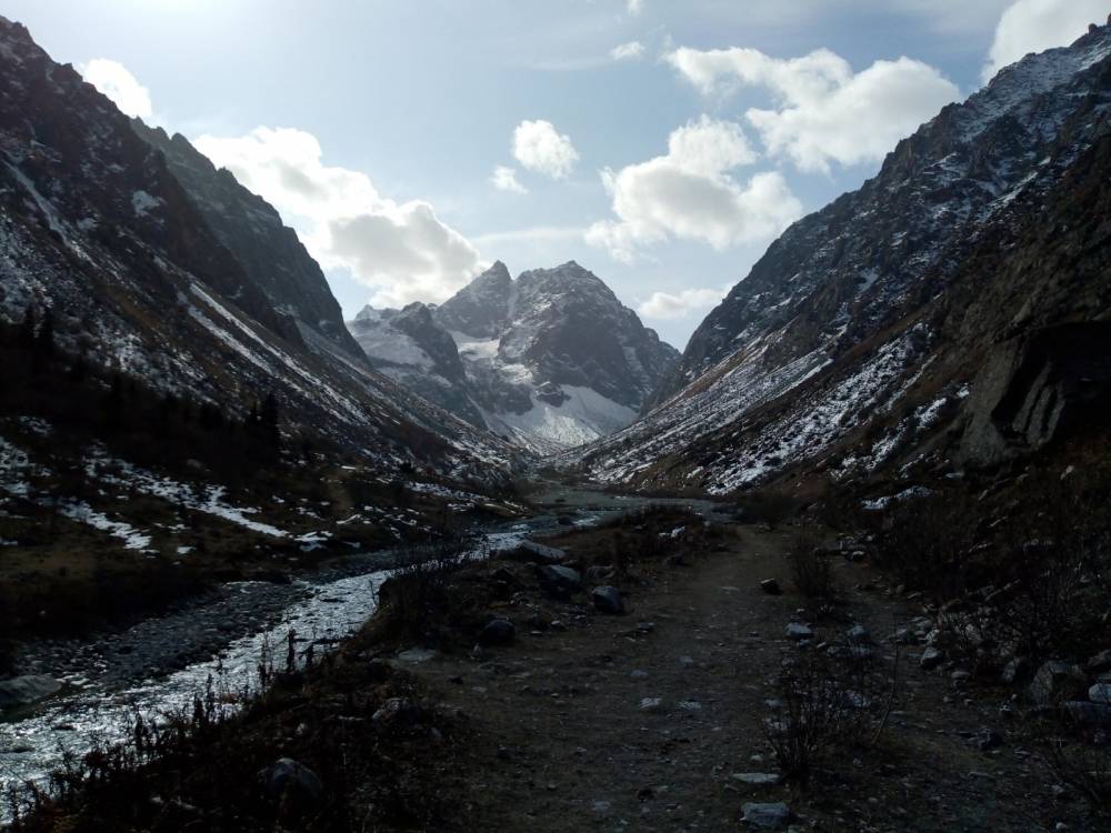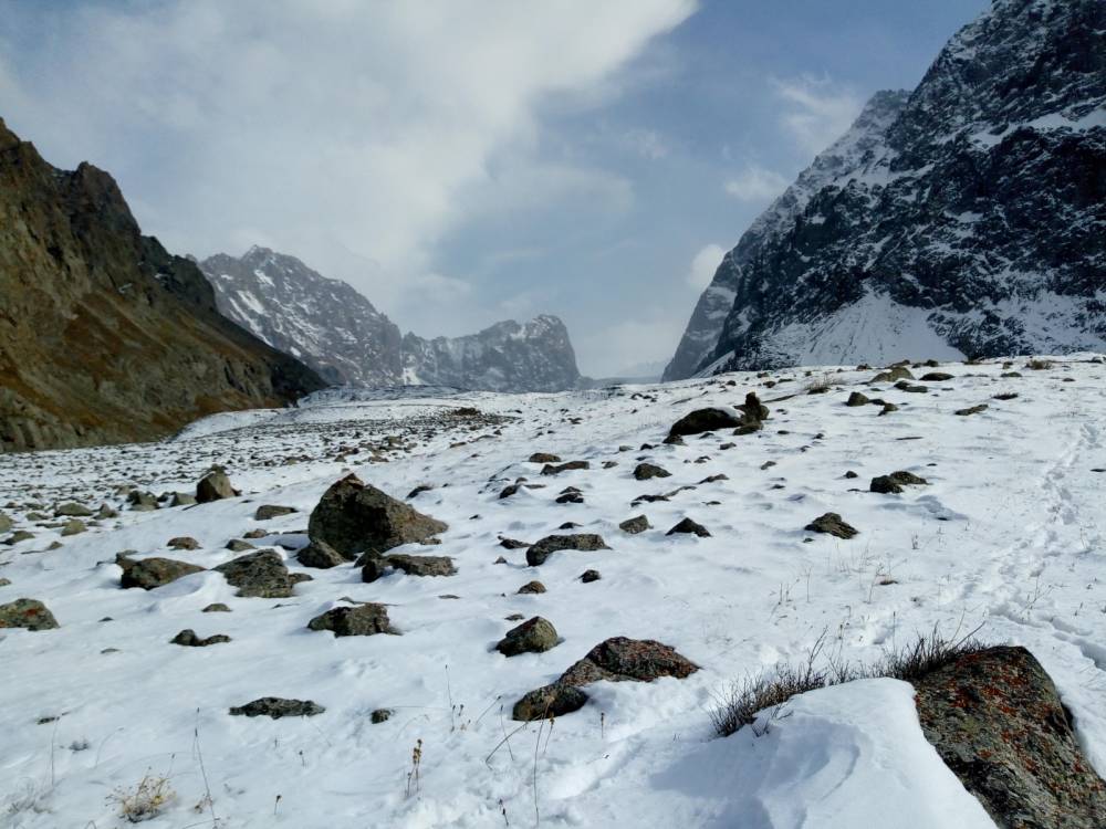 There are some days that are worth talking about. Yesterday was such a day. My friend Jérémie and I decided to go to Ala-Archa before the snow covers everything. Our objective: a small nameless peak, 3393m high, from which we hoped to get a glimpse of the Ala-Archa peak and the Golubina glacier. In principle, it is not so a hard one to climb, just a long day of walking in (still shallow) snow. We took a camera and binoculars with us (you never know), but the goal was different. The peak was waiting.