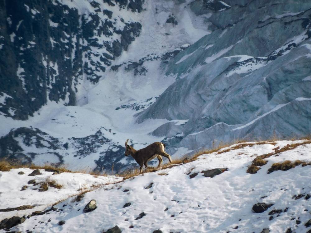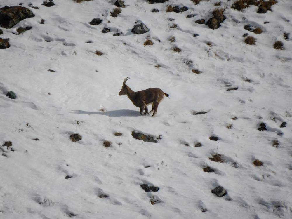 But this was just the beginning. After the bridge, it became difficult to make even 100 steps forward. It started with the ermine. We saw this cutest of all animals for the first time and watched in awe as she ran and jumped all over the place. She already had her white winter fur, even though there is still little snow (that made her extra visible, for our greatest joy). After half an hour, as we were just starting to think about continuing the hike, white-browed tit-warblers appeared. And, going against their nature, they decided to pose for us. Feeling that luck was on our side, we decided to continue in silence, hoping for a snow leopard (one can always dream!) We didn’t see the big cat, but literally 15 minutes later… snowcocks appeared. And they also posed for us. I spent the whole summer looking for this bird, but only saw a few individuals from afar. And there they were, careful, but not shy. Once again, we just had to stop. After all this, is it worth saying that while we had lunch, a nice ibex also showed itself?